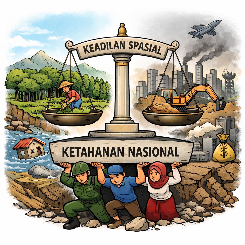Keadilan sosial tidak berdiri di ruang narasi hampa, tetapi berdiri di atas spasial atau peta. Jika negara ingin membangun ketahanan nasional yang kokoh, maka pengelolaan ruang harus adil, berbasis data dan berintegritas. Karena pada akhirnya, mewujudkan keadilan spasial berarti menjaga keselamatan bangsa dan memastikan estafet pembangunan Indonesia berkemajuan.